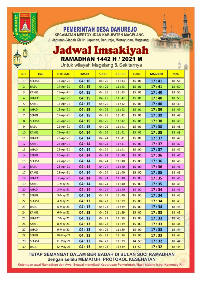 Jadwal Imsakiyah Ramadhan 1442 H / Tahun 2021 M