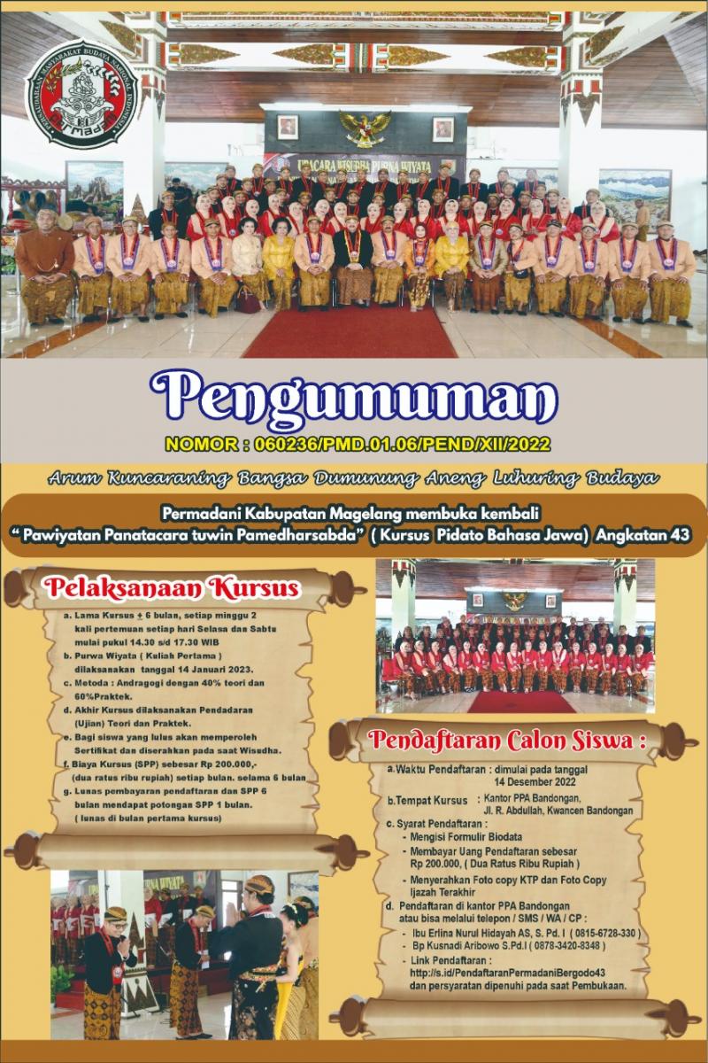 Pembukaan Pawiyatan Permadani Kabupaten Magelang Tahun 2022 ( Bregada 43 )